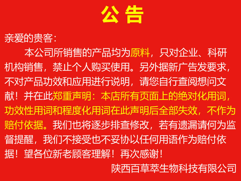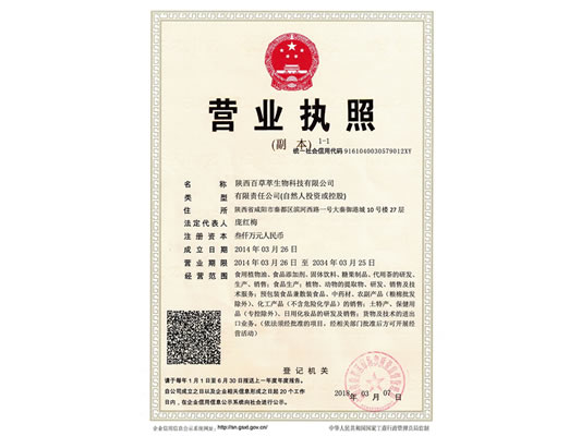 陜西百草萃生物科技有限公司,位于陜西省咸陽市秦都區(qū)濱河西路1號大秦御港城,公司成立于1996年,主要從事天然植物種植、研發(fā)、生產(chǎn)、加工、銷售為一體的高科技企業(yè)。主營醫(yī)藥原料、保健品原料、化妝品原料,精細(xì)化工原料。公司致力于人類健康保護(hù)事業(yè)“ 以科技為動(dòng)力,以質(zhì)量求生存” 的本質(zhì),依托陜西高新科技技術(shù)人才和科研優(yōu)勢,已形成多學(xué)科、全方位、高層次的技術(shù)管理精英團(tuán)隊(duì)。充分利用秦巴山區(qū)的天然藥物資源,歷經(jīng)多年發(fā)展為打造百草萃生物品牌奠定了基礎(chǔ)。